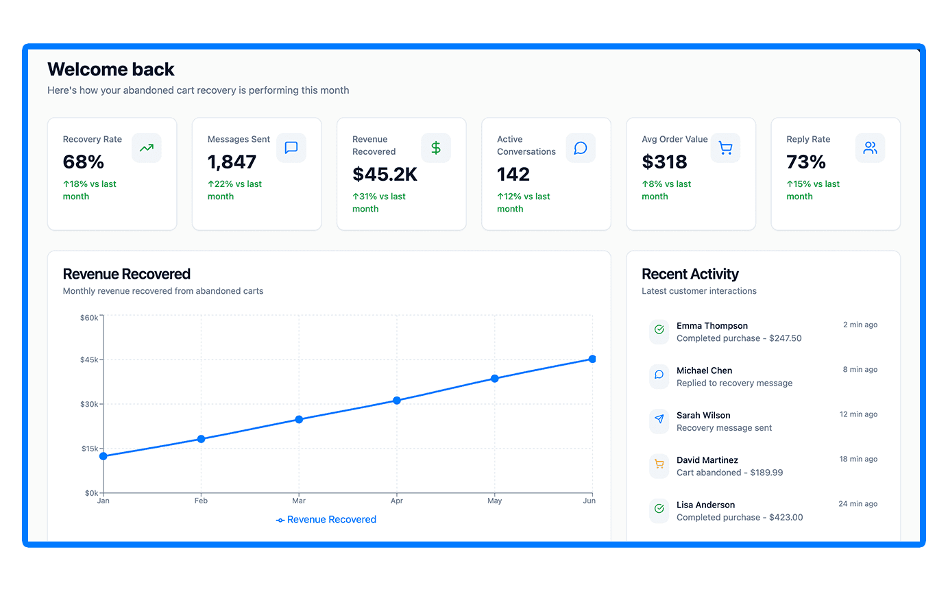 When a shopper leaves during checkout, Tailored instantly triggers a real-human SMS outreach. Our agents text the shopper within minutes, answer questions, overcome objections, and personalize incentives (if allowed) — guiding them back to complete their purchase.